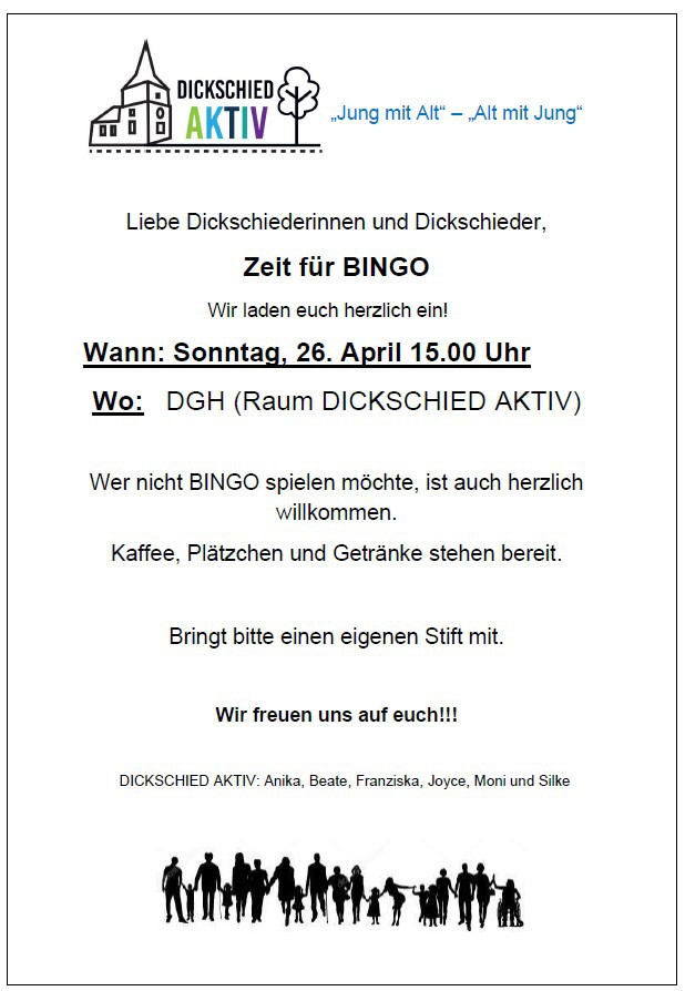 Alle Menschen, denen Dickschied am Herzen liegt und die dafür auch mal einen Besen in die Hand nehmen wollen, sind herzlich eingeladen!
