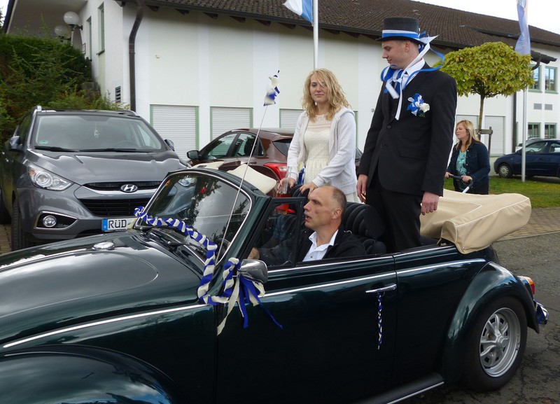 Kerbehochzeit mit Trauspruch, Kerbebaum holen, schälen und stellen,
