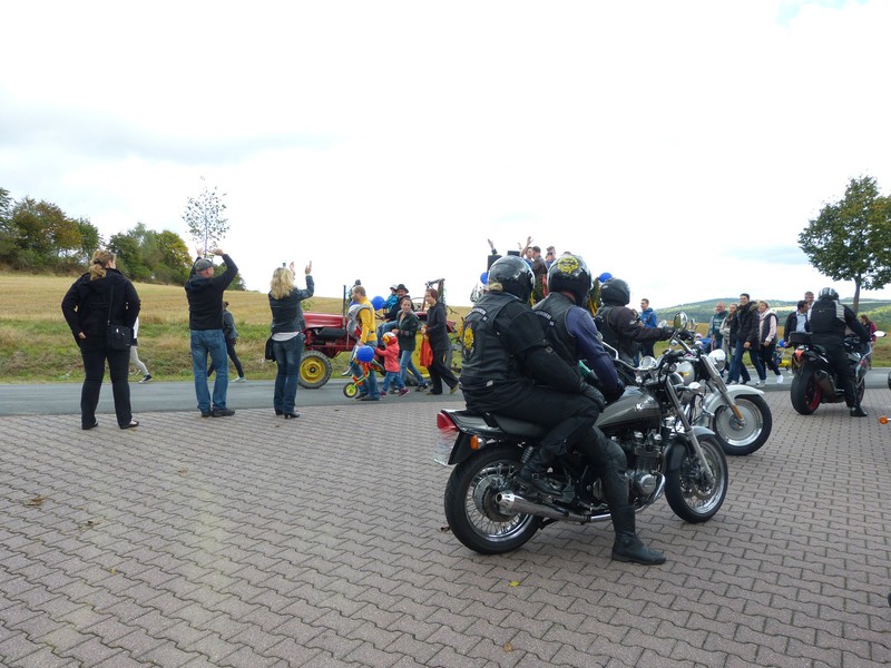 Kerbeumzug am Sonntag mit bunt geschmückten Kinderfahrrädern, Frühschoppen und Kerbespruch